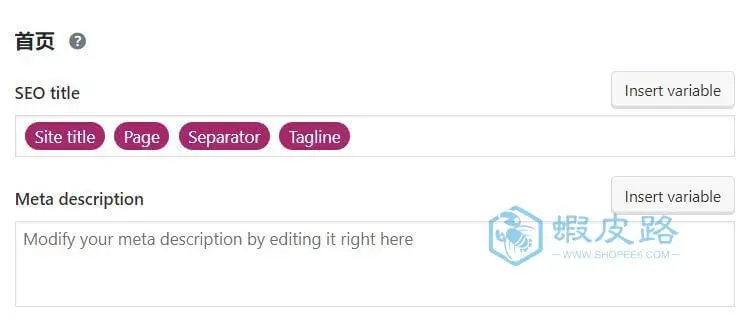 在此选项卡中,您可以选择主页标题和元描述的模板。